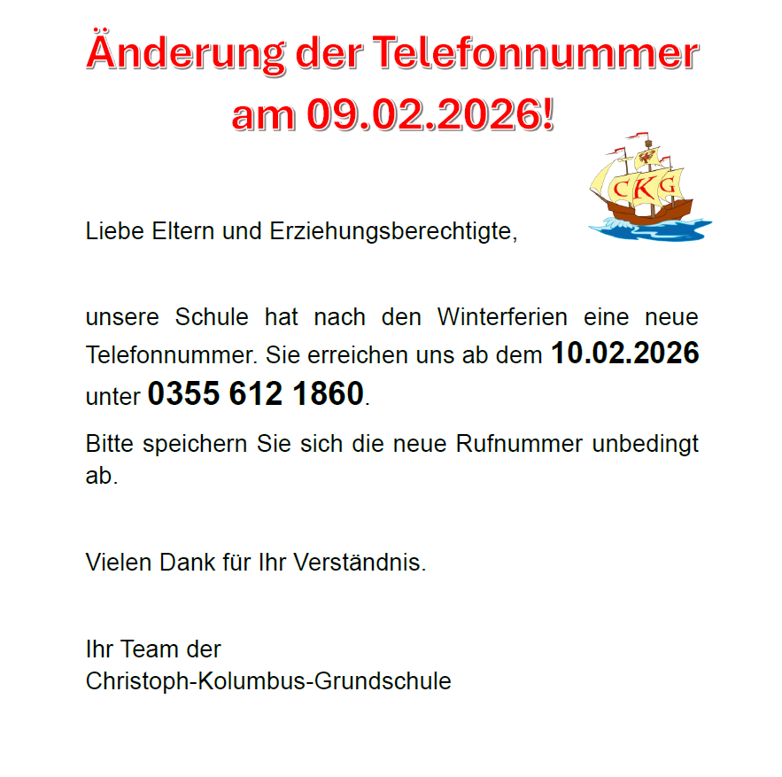 Willkommen auf der Homepage der Christoph-Kolumbus-Grundschule. Diese Seite bietet ein breites Informationsangebot rund um unsere Schule. Wir wünschen Ihnen viel Spaß beim stöbern. In unserem Schulhaus befindet sich die Sandower Bücherei. Das Veranstaltungsangebot des Kulturvereins “Bücherei Sandow e.V.” finden Sie unter: www.buecherei-sandow.de Die Homepage wird durch den Förderverein finanziert.