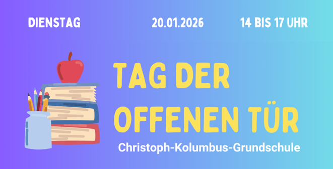 Wir laden alle Kinder, Eltern und Interessierten herzlich zu unserem Tag der offenen Tür am 20.01.2026 von 14.00 bis 17.00 Uhr zu uns in die Christoph-Kolumbus-Grundschule ein!